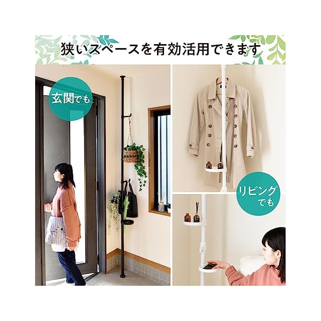 【場所をとらずに空間を活用】突っ張り方式で狭い場所にも設置が可能、わずかなすき間を収納スペースに活用できます。