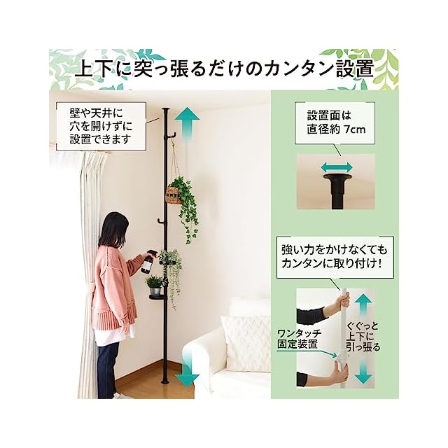 【カンタン設置】実用新案取得済みのワンタッチ突っ張り構造で上下に突っ張るだけで設置がカンタン。