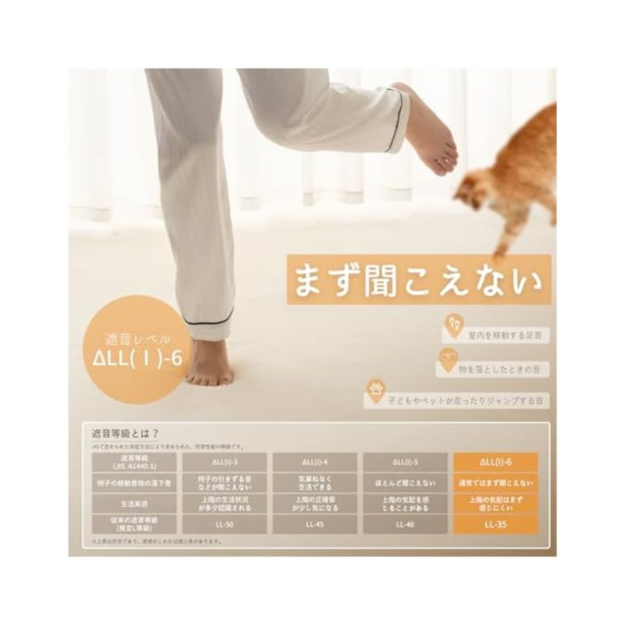 【遮音レベルΔLL(Ⅰ)-6】優れた遮音性能を持つカーペットで、子供やペットがカーペット上で走り跳ねても、ほとんどの音を軽減し、静かでリラックスした生活環境を提供します!
