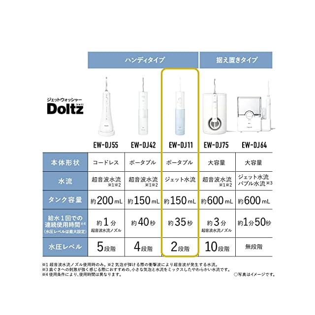 パナソニック 口腔洗浄器 ジェットウォッシャー ドルツ ジェット水流 防水 ポータブルモデル 青 EW-DJ11-A