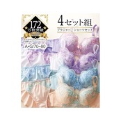 2020年2月12日より4セット組(エレガントカラー)が発売になりました。花柄刺しゅうのゴージャスなブラ・ショーツ4セット組。お好みに合わせて、お選びいただけます。【A70/M】:ブラジャー:A70、ショーツ:M【A75/M】:ブラジャー:A75、ショーツ:M【B70/M】:ブラジャー:B70、ショーツ:M【B75/M】:ブラジャー:B75、ショーツ:M【B75/L】:ブラジャー:B75、ショーツ:L【C70/M】:ブラジャー:C70、ショーツ:M【C75/M】:ブラジャー:C75、ショーツ:M【C75/L】:ブラジャー:C75、ショーツ:L【C80/L】:ブラジャー:C80、ショーツ:L【D70/M】:ブラジャー:D70、ショーツ:M【D75/L】:ブラジャー:D75、ショーツ:L【D80/L】:ブラジャー:D80、ショーツ:L【E70/M】:ブラジャー:E70、ショーツ:M【E75/L】:ブラジャー:E75、ショーツ:L【E80/L】:ブラジャー:E80、ショーツ:L【F70/M】:ブラジャー:F70、ショーツ:M【F75/L】:ブラジャー:F75、ショーツ:L【F80/LL】:ブラジャー:F80、ショーツ:LL【G70/M】:ブラジャー:G70、ショーツ:M【G75/L】:ブラジャー:G75、ショーツ:L【G80/LL】:ブラジャー:G80、ショーツ:LL