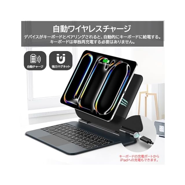 【新型自動チャージ】 マジックキーボード 2024 iPad Pro (M4) 11インチ 対応スマートキーボード 単独充電不要 iPad Pro 11 (M4) 11inch専用 トラックパッド付きキーボード ケース 高感度磁気吸着ケース 日本語配列キーボード 日本語説明書