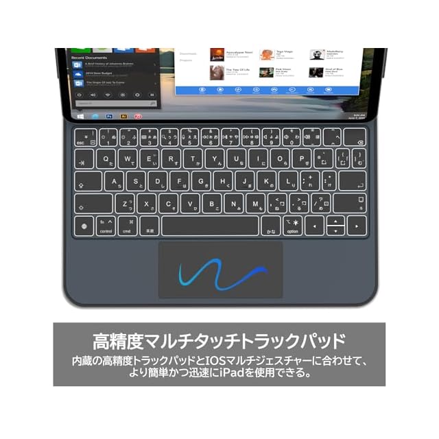 【マルチタッチトラックパッド】改良されたトラックパッドが設置されており、iPadをすばやく簡単に操作することができます。IOSマルチタッチジェスチャーに対応しているので、文書の編集、レポートの作成、ウェブの閲覧を圧倒的なスピードで行うことができできます。また、便利なショートカットを搭載しているので、ワンタップで光度レベルや音量を調整したり、音楽を変更したりすることができます。