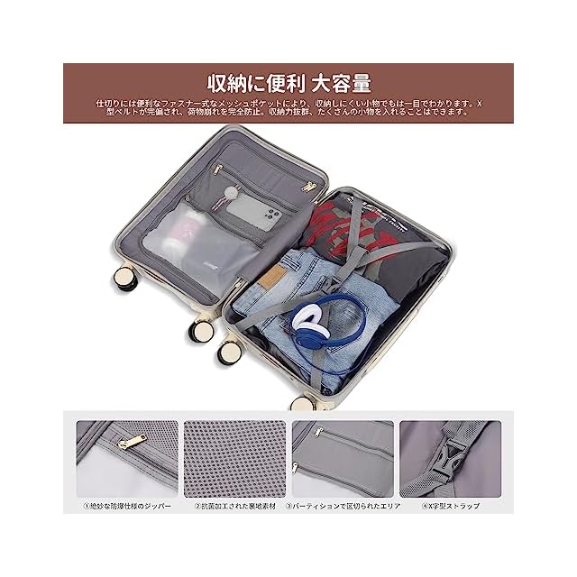 [Spyplan] スーツケース 機内持ち込み 拡張機能付き キャリーケース 超軽量 大容量 可愛い キャリーバッグ 拡張機能付き 大型 耐衝撃 ジッパータイプ 静音 ダブルキャスター 360度回転 TSAロック搭載 人気 旅行 ビジネス 出張 Sサイズ 2泊3日 40l ライトグレー
