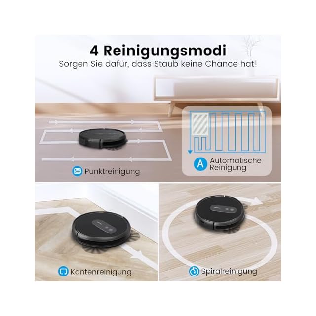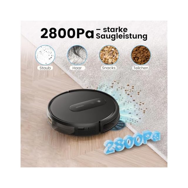 商品名:ロボット掃除機 2800Pa 強力吸引 お掃除クリーナー 音量調節 静音 120分間 WiFi App対応 リモコン遠隔操作 Alexa対応不可 自動充電 落下防止 衝突センサー 自動掃除機 AIRROBO (ディープブラック)