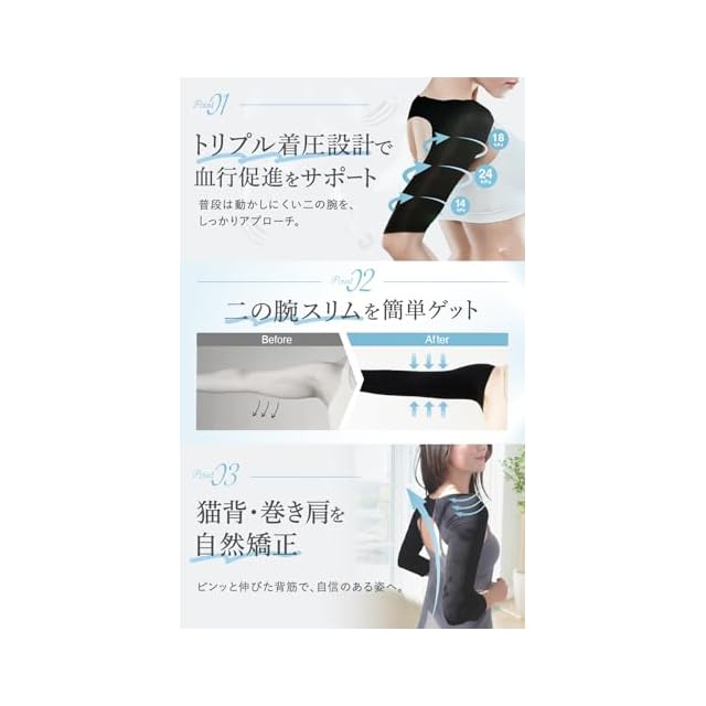 ✨【二の腕ケア】強力な着圧で気になる二の腕をキュッと引き締めます。