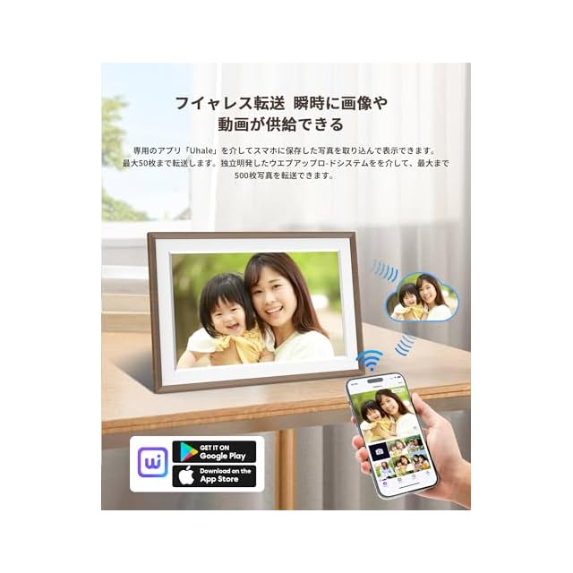【スマホWi-Fi高速転送・パソコンバッチ転送】専門無料のアプリ「Uhale」を提供し、Android或いはiOSもダウンロードできます。スマホで一度に最大100枚の写真を選ぶことができて、分次送信の悩みがありません。パソコンで最大500枚まで送信できます。フォーマットの問題を心配する必要はありません。どのフォーマットでもフォトフレームから表示可能なフォーマットに変換できます。フォーマット:jpeg/jpg/png。
