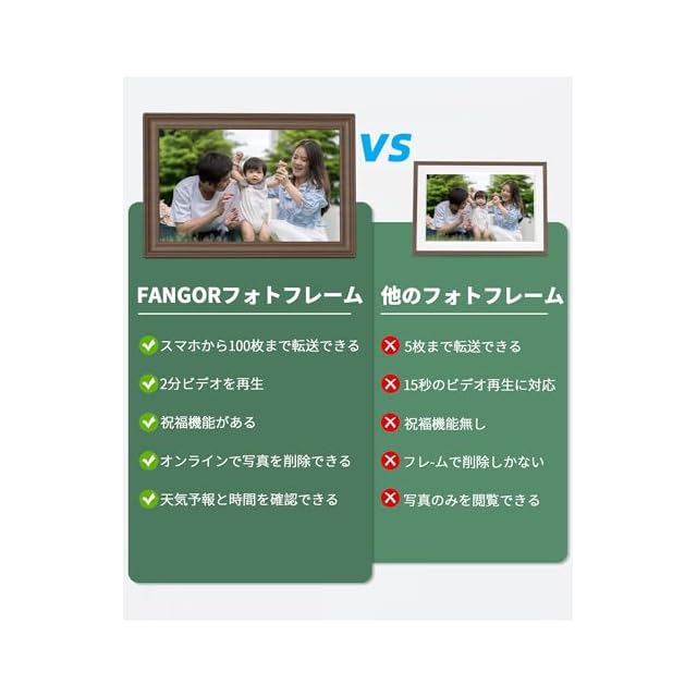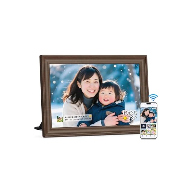 商品名:FANGOR デジタルフォトフレーム Wi-Fi 10.1インチ 1280*800解像度 32GB内蔵 SDカード拡張可 写真/動画/天気予報 スライドショー 誕生日 母の日 父の日 敬老の日 初心者向け ブラウン木目フレーム