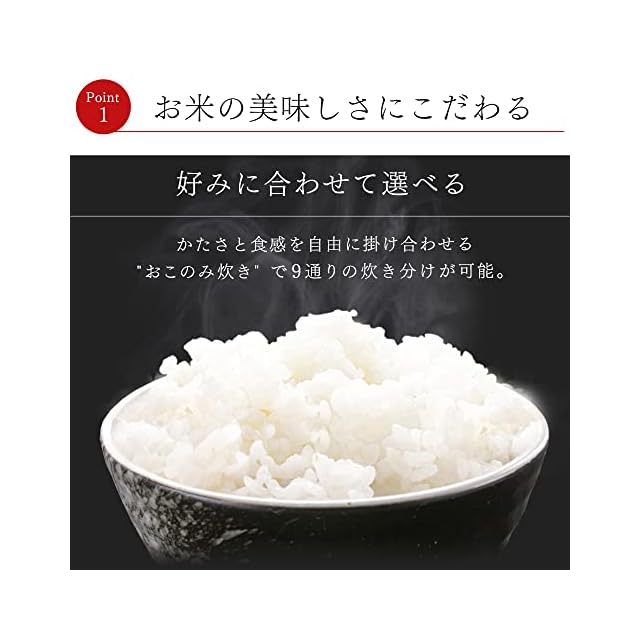 電源:AC 100V(50/60Hz共用) / 定格消費電力(炊飯時):1425W / 炊飯容量(最大):【無洗米・白米・新米・早炊き・省エネ・カレー・丼・すし飯・冷凍・おむすび】1.8L(10合) 【玄米・麦飯・雑穀米・おこわ・炊込み・高速炊き・食物繊維米】1.08L(6合) 【低糖質】0.90L(5合) 【おかゆ】全がゆ 0.45L(2.5合)、5ぶがゆ 0.27L(1.5合)