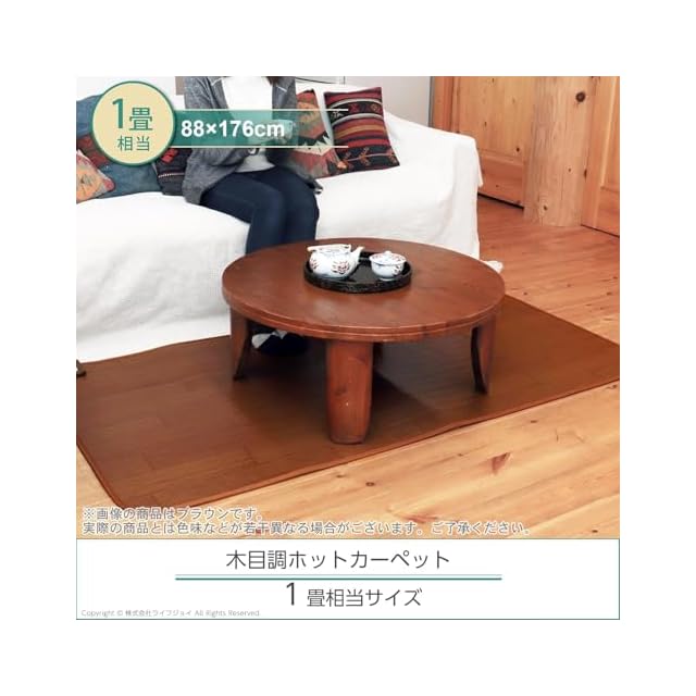商品名:ライフジョイ ホットカーペット 1畳 フローリング調 電気カーペット 88cm×176cm 防水 ブラウン JPJ101WB