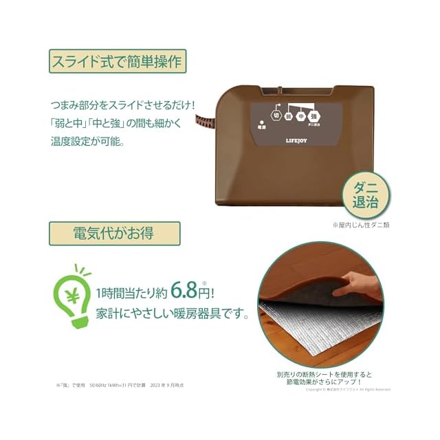 【簡単操作】コントローラーはつまみを動かすだけで、簡単に操作できるシンプルな設計です。温度設定は『弱・中・強』の三段階です。さらに、弱から中の間、中から強の間と細かい温度設定も可能です。お好みの温度に設定してお使いいただけます。