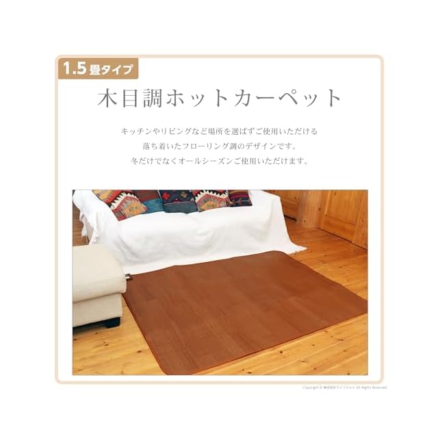 ライフジョイ ホットカーペット 1.5畳 フローリング調 電気カーペット 128cm×176cm 防水 ブラウン JPJ151WB