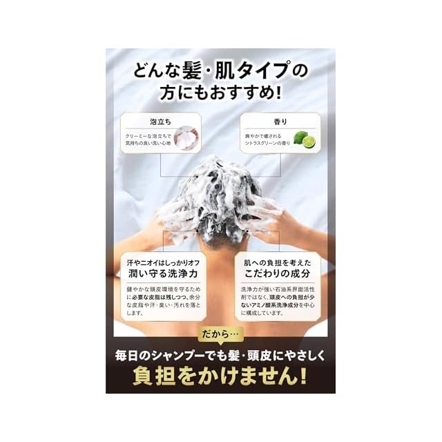 新しい成分でスカルプの新時代へ。<br> セットで使用することでより良い髪と頭皮をサポート。<br><br> ▼内容量:シャンプー350ml、コンディショナー350ml<br><br> ▼ 泡立ちが良くきめ細かいシルキーな泡<br> アミノ酸系洗浄剤のウィークポイントである「泡立ちの物足らなさ」を克服。<br> 泡立ちが悪いと髪の毛同士が摩擦し傷めます。<br> 泡が細かく重たすぎると指通りが悪く髪が抜けます。<br> サロンの髪のプロが開発したスーパーバランス処方です。<br><br> 【国際的にオーガニックと認められた成分を使用しています】<br><br> ▼ シャンプー[洗い方]<br> 髪をよくすすいでから適量を手に取り、髪と頭皮にいきわたるようにのばし、<br> 指の腹でやさしくマッサージしながらシャンプーしてください。<br> その後よくすすいで髪と毛根の汚れをしっかり洗い流してください。<br><br> ▼ コンディショナー[使用方法]<br> シャンプー後、根元から毛先まで十分に塗布し、1~3分置いてから充分に洗い流してください。