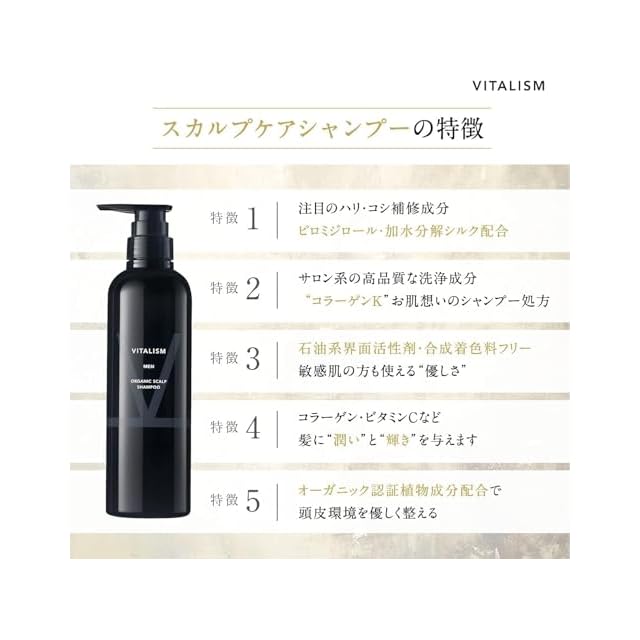 商品名:バイタリズム(VITALISM) スカルプケア シャンプー & コンディショナー セット 各350ml メンズ 【頭皮ケア クリニック の思いから生まれた スカルプ ケア】 [国際的 オーガニック 認証成分配合] (男性用)