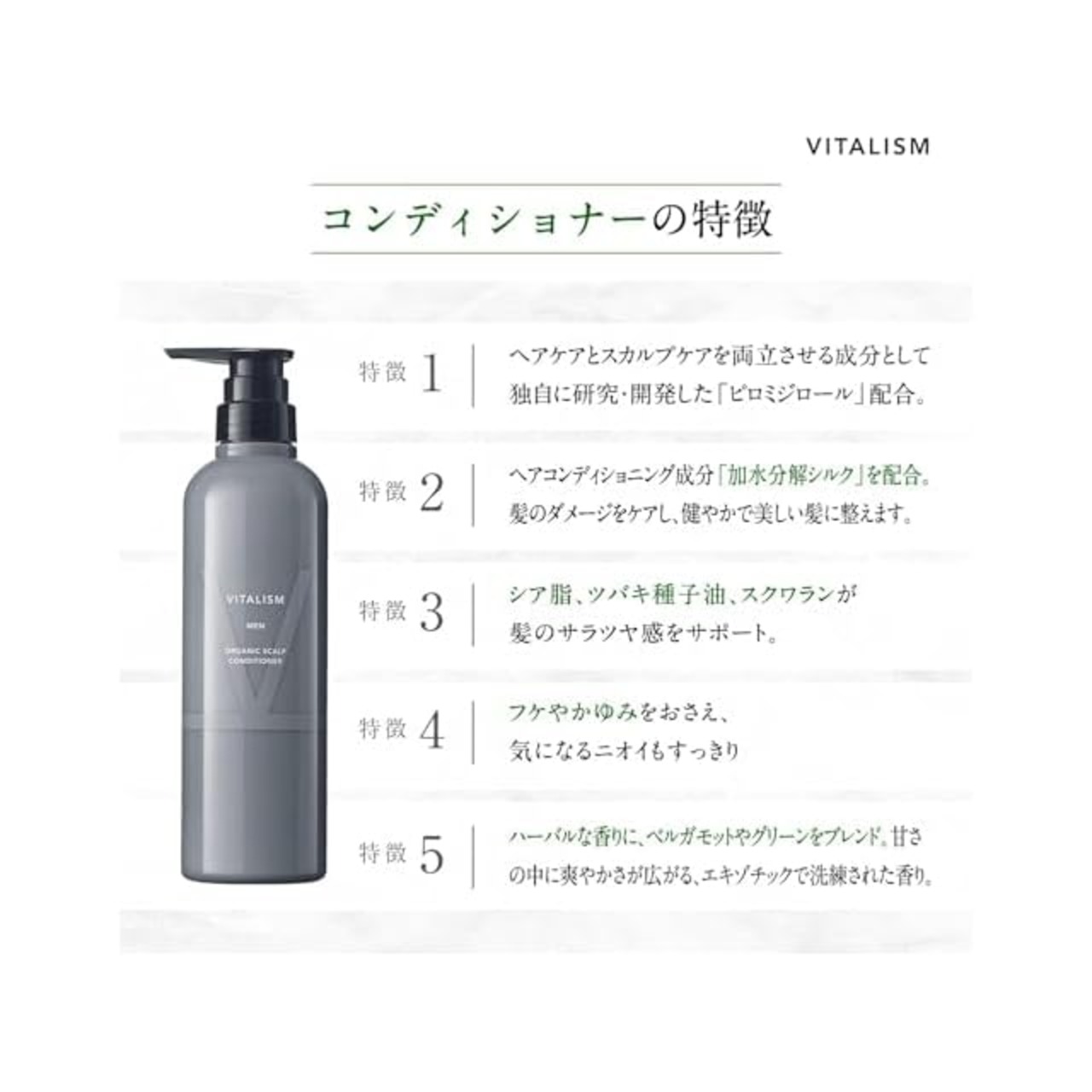 商品名:バイタリズム(VITALISM) スカルプケア シャンプー & コンディショナー セット 各500ml メンズ 【頭皮ケア クリニック の思いから生まれた スカルプ ケア】 [国際的 オーガニック 認証成分配合] (男性用) 大容量 ポンプ式 / 【 メーカー限定 旅行用 パウチ 付き 】