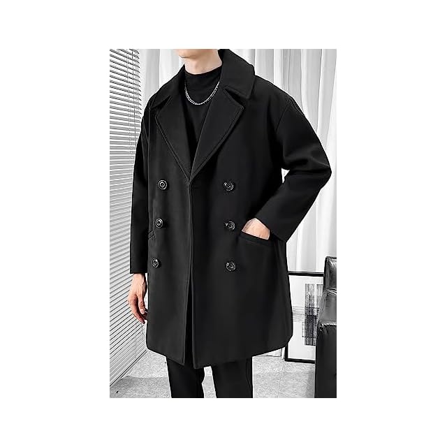 [foveitaa] コート メンズ ロングコート ビジネス ウールコート 秋服 冬服 大きいサイズ 無地 暖かい ロング丈 アウター 防寒 カジュアル チェスターコート ゆったり シンプル オシャレ かっこいい ビッグ シルエット Black-XL