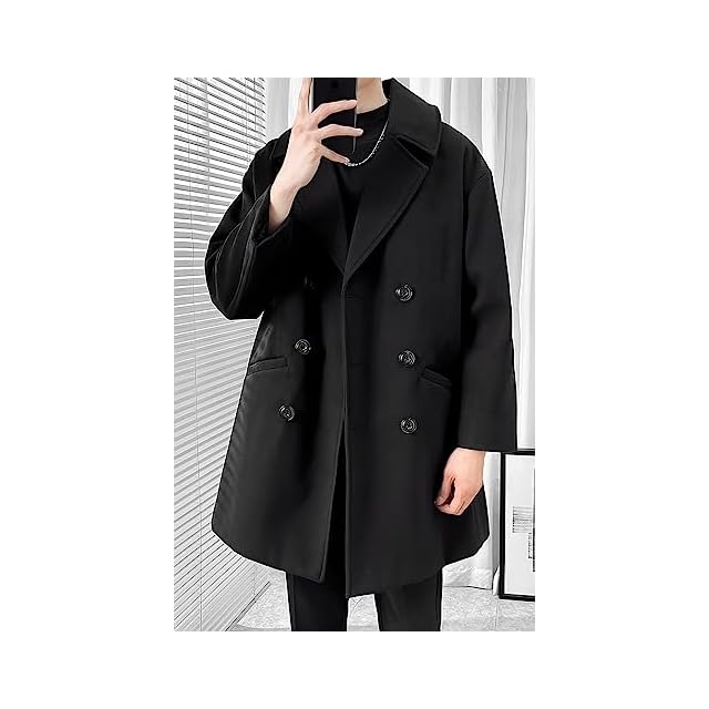 商品名:[foveitaa] コート メンズ ロングコート ビジネス ウールコート 秋服 冬服 大きいサイズ 無地 暖かい ロング丈 アウター 防寒 カジュアル チェスターコート ゆったり シンプル オシャレ かっこいい ビッグ シルエット Black-XL