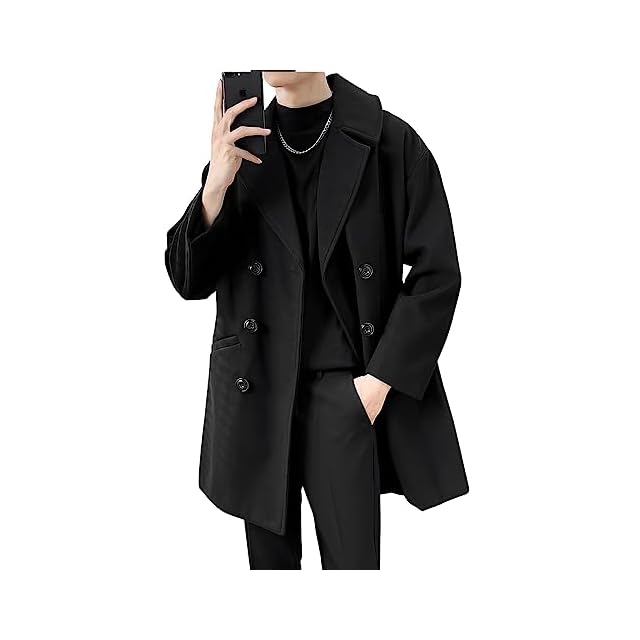 商品名:[foveitaa] コート メンズ ロングコート ビジネス ウールコート 秋服 冬服 大きいサイズ 無地 暖かい ロング丈 アウター 防寒 カジュアル チェスターコート ゆったり シンプル オシャレ かっこいい ビッグ シルエット Black-4XL