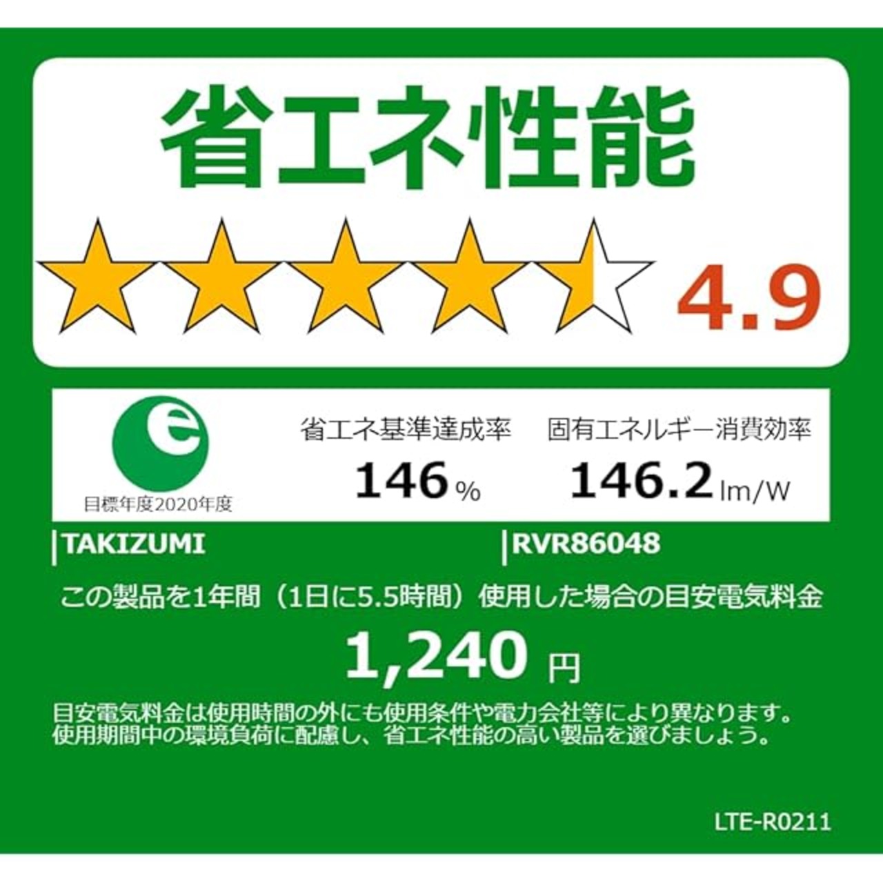 【達成率146%、業界トップクラスの省エネ性】 省エネ基準達成率はトップクラスの146%!蛍光灯と比べ、電気代を大幅に節約できます