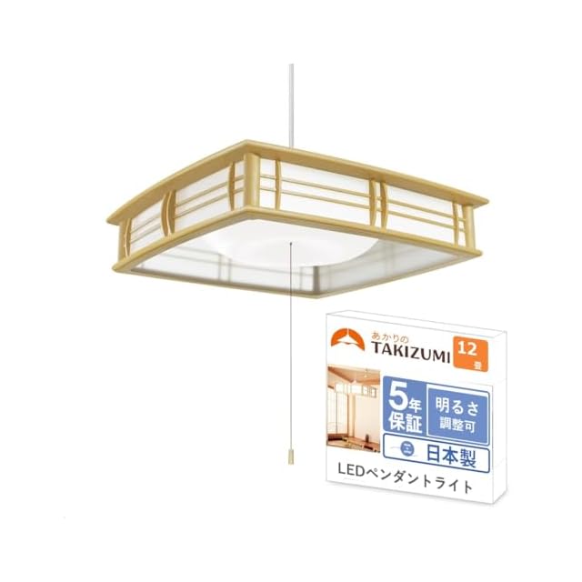 タキズミ(Takizumi)【省エネ 節電 日本製 5年】 省エネ性業界トップクラス LED 和風 ペンダントライト ~12畳 工事不要 簡単取付 プルスイッチ付 RV12641