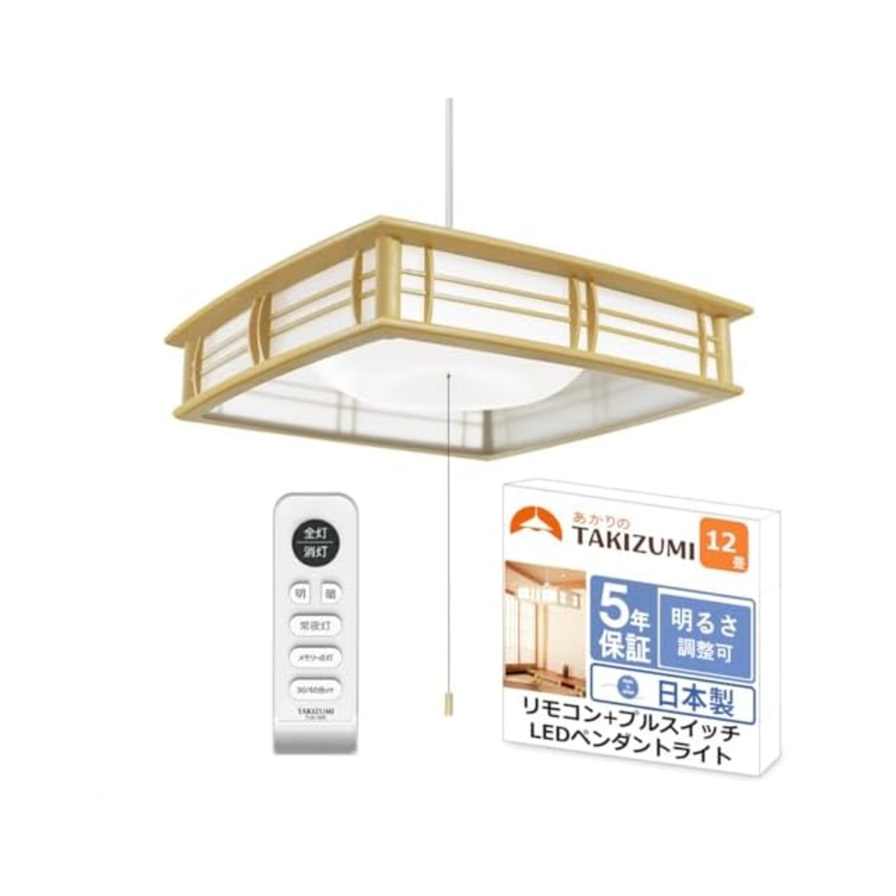 タキズミ(Takizumi)【省エネ 節電 日本製 5年】 省エネ性業界トップクラス LED ペンダントライト ~12畳 工事不要 簡単取付 リモコン付 プルスイッチ付 RVR12642
