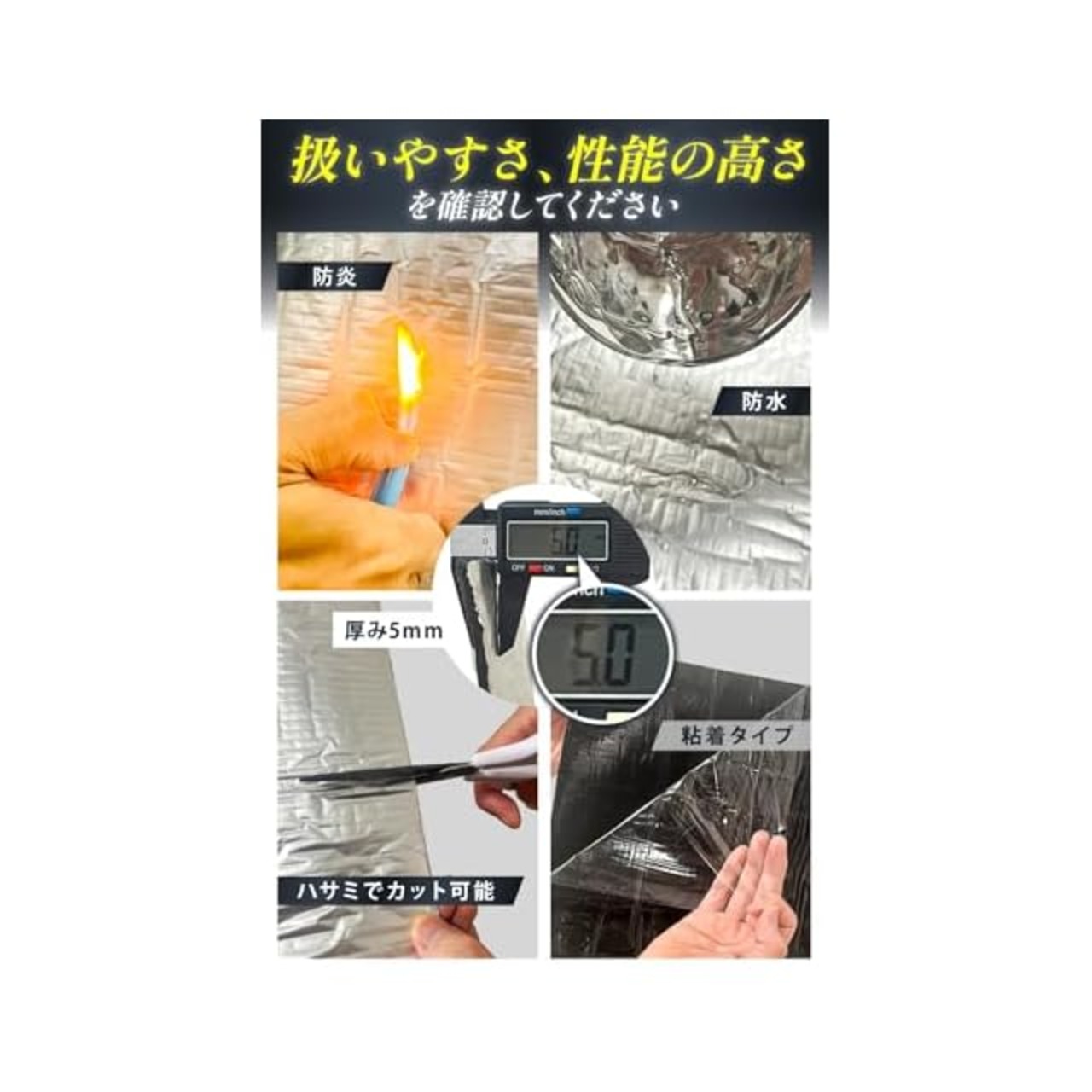 【CARトップ掲載】 断熱シート 車 断熱材 断熱マット 車用 防音 断熱 難燃性試験済み 厚さ5mm 1m×10m 1m×5m 1m×3m 1m×2m 50×30cm12枚 mugenbo (1m×2m 厚さ5mm)