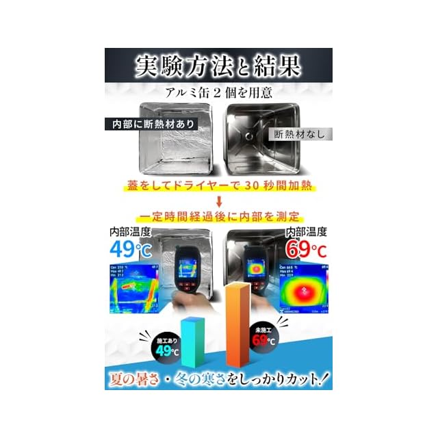 【 整備士歴9年時安一希さん監修 】整備士歴9年時安一希さん監修。専門家監修による信頼設計。商品の5つのおすすめポイント1.厚みがあり、しっかり断熱材効果がある。ポイント2.夏冬の冷暖房効果を高めてくれるポイント3.難燃性試験をクリアしており、安心感がある。ポイント4.サイズが大きく、1つでも多くの箇所を施工できる。ポイント5.防音効果もある