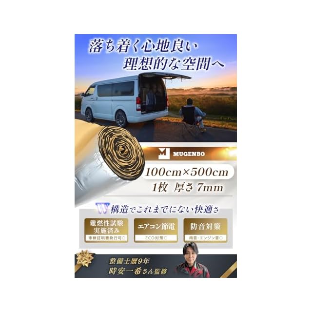 【CARトップ掲載】 断熱シート 車 断熱材 断熱マット 車用 防音 断熱 難燃性試験済み 厚さ5mm 1m×10m 1m×5m 1m×3m 1m×2m 50×30cm12枚 mugenbo (1m×5m 厚さ7mm)
