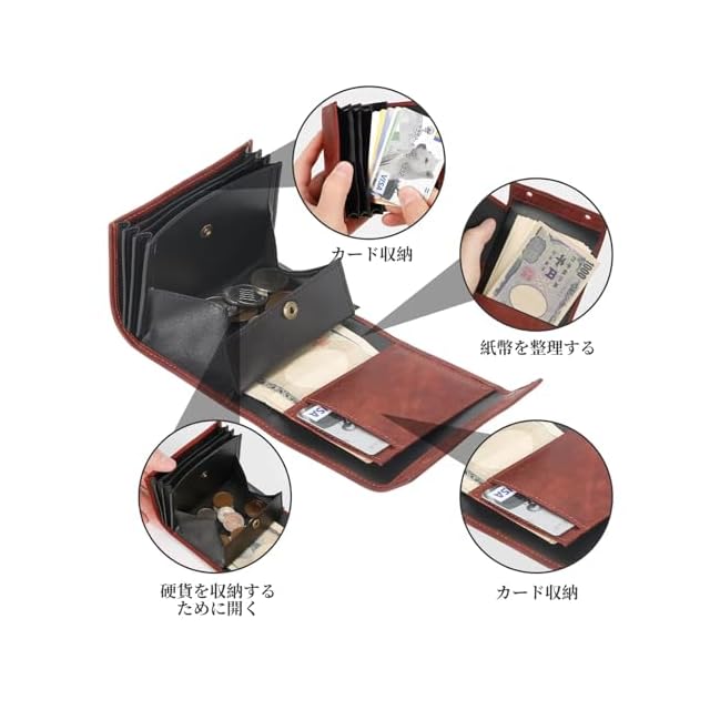 商品名:[prosperous] 二つ折り財布 メンズ 2つ折り イタリア レザー ミニ財布 コンパクト箱型小銭入れ小さい財布 二つ折り 箱状財布 大容量 L字 レディース (レッド) [並行輸入品]