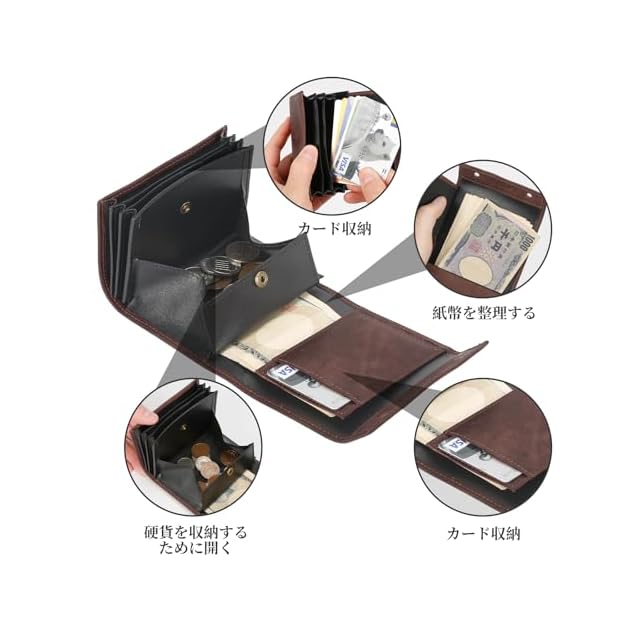 商品名:[prosperous] 二つ折り財布 メンズ 2つ折り イタリア レザー ミニ財布 コンパクト箱型小銭入れ小さい財布 二つ折り 箱状財布 大容量 L字 レディース (深棕) [並行輸入品]