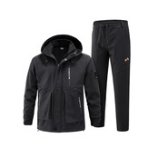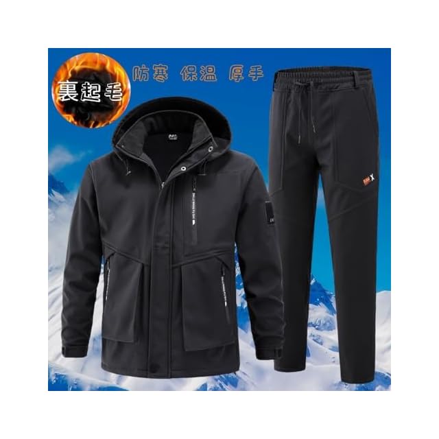 [Inkpoo] 登山ジャケット 冬服 コート メンズ 防寒 防風 防撥水 上下セット ズボン 裏起毛 ウィンドブレーカー メンズ マウンテンパーカー アウトドアウェア アノラック スキー 春秋冬 Black 3XL