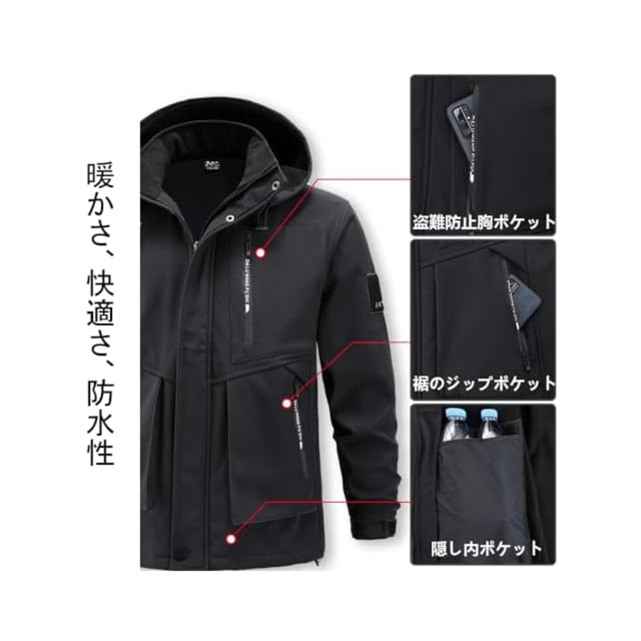 商品名:[Inkpoo] 登山ジャケット 冬服 コート メンズ 防寒 防風 防撥水 上下セット ズボン 裏起毛 ウィンドブレーカー メンズ マウンテンパーカー アウトドアウェア アノラック スキー 春秋冬 Black 3XL