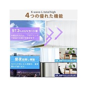 紫外線約97.3%カット・断熱効果36.9%・保温効果33.5%!お部屋にいるあなたの大切なお肌や家具・カーペットなどの日焼けを防いでくれる「K-wave-L-total high」カーテンです。