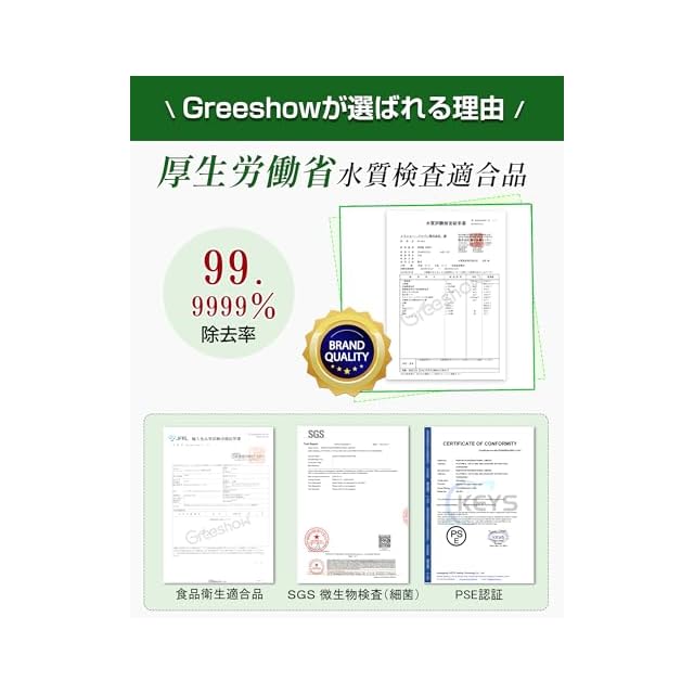 Greeshow GS-2811携帯浄水器の中空糸膜フィルターは厚生労働省の水質基準に照らし合わせて、水質検査を実施しております。プロも信頼するほどの安全品質であることを水質検査成績書にて証明されております。驚異の除去率99.9999%を国内の水質検査機関にて実証した携帯浄水器です。水道水や川、渓流の水、雨水の浄化なども可能です。安心して飲めるほど透き通った清潔な飲料水にろ過することができます。実はミネラルを豊富に含む水道水。そのミネラルは保ったまま、雑菌まで除去できるのはGreeshowだけです。
