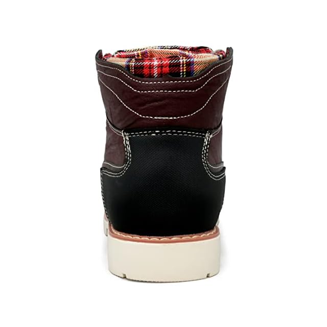 [エドウィン] 防水 ブーツ メンズ 軽量 スニーカーブーツ ハイカット カジュアルブーツ PUレザー 革靴 幅広 上質素材 おしゃれ 紐靴 EDM8500 レッドブラウン 25.5