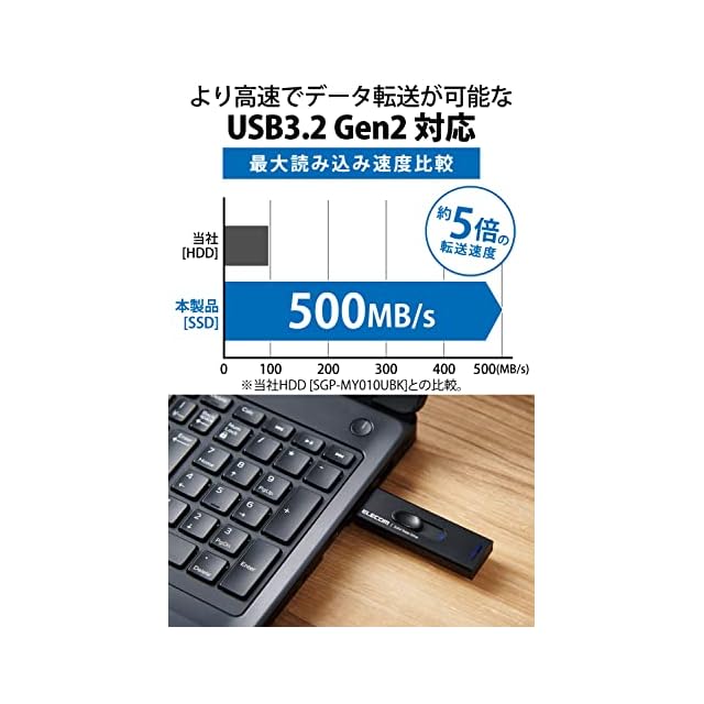 商品名:エレコム SSD 外付け 500GB USB3.2(Gen2) 読込速度500MB/秒 アルミ筐体 スライド式 キャップレス 【PS5/PS4/テレビ録画 対応】 ブラック ESD-EMA0500GBK