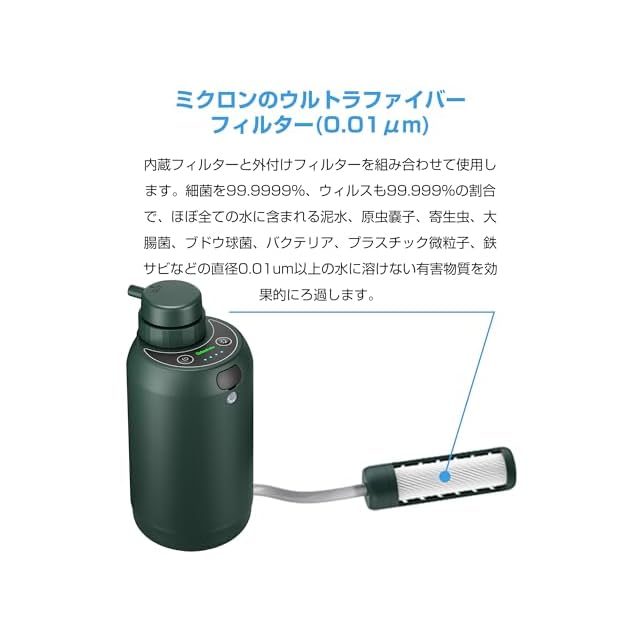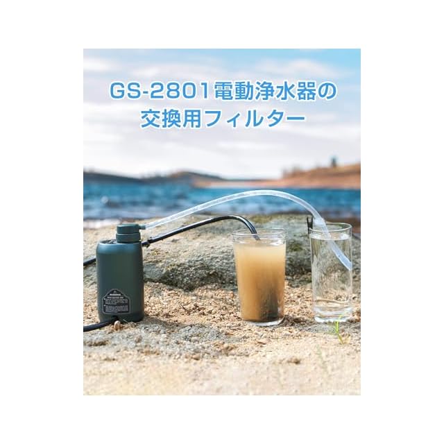 【GS-2801電動浄水器の互換性】この外付け中空糸膜フィルターは、GS-2801電動浄水器( ディープグリーン)に適用します。超高品質外付け0.1ミクロン中空糸膜フィルターを採用し、粒子、土砂、原虫嚢子、沈殿物などの不純物をろ過することができます。対応電動式携帯浄水器 ASIN: B0BFHDLPYM、B0BWQ4RTP6。