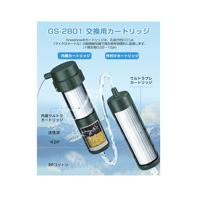 商品名:Greeshow 携帯浄水器 GS-2801 浄水器交換用外付けフィルター アウトドア 濾過器 【日本正規品】 災害 フィルター 水濾過 【防災士監修】