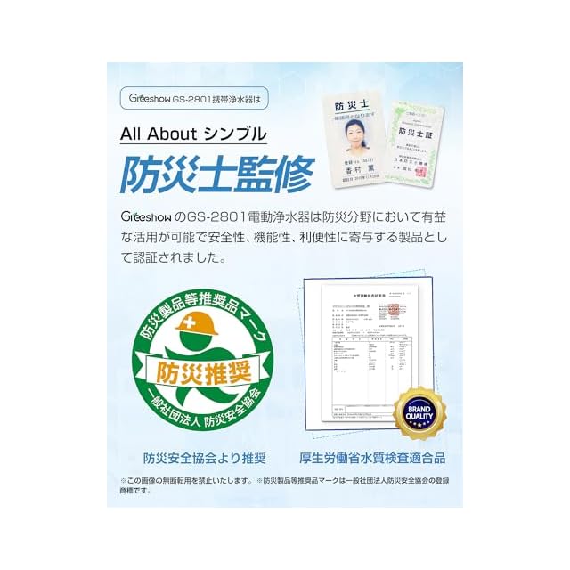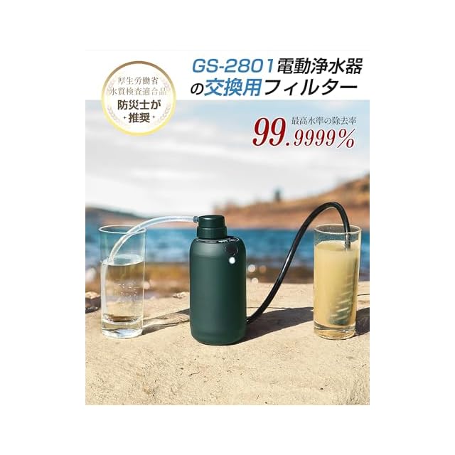 GS-2801電動浄水器の交換用フィルター:このカートリッジは、Greeshow 2801携帯浄水器に適用します。ブラックの内蔵フィルターと外付けフィルターががあります。GS-2801携帯浄水器は・防災必要性・安全性・機能性において、「一般社団法人防災安全協会」での評点をクリアし認証されました。対応電動式携帯浄水器 ASIN:B0BFHDLPYM