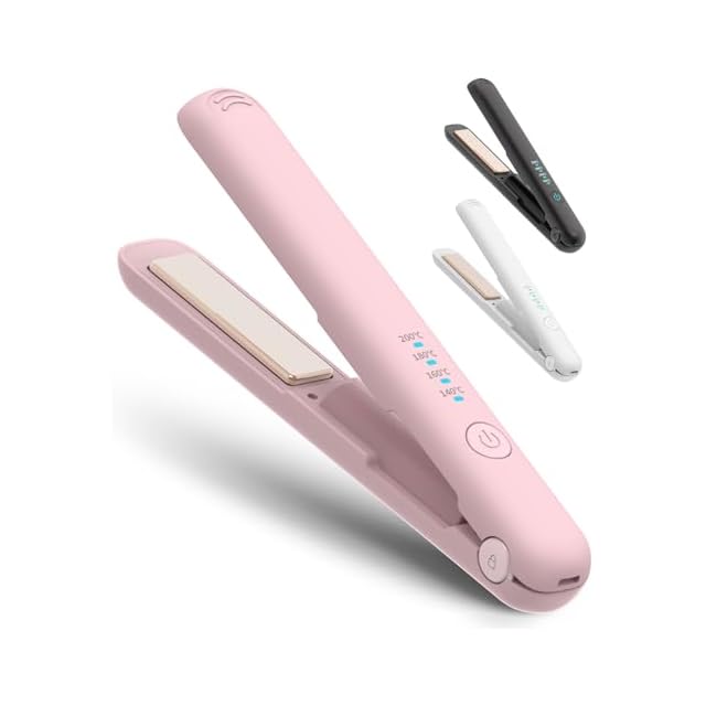 ヘアアイロン コードレス 2WAY カール/ストレート 充電式ヘアアイロン 18mm プロ仕様200℃ TYPE-C充電 3200mAh大容量 140℃~200℃4段階温度調整 自動電源OFF 誤起動防止ロック ミニ 小型 持ち運び便利 男女兼用 家庭/旅行/出張/通勤用 贈り物 飛行機持ち込み不可 ポータブル (ピンク, L)
