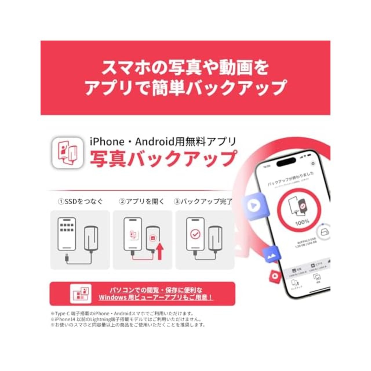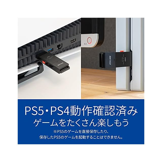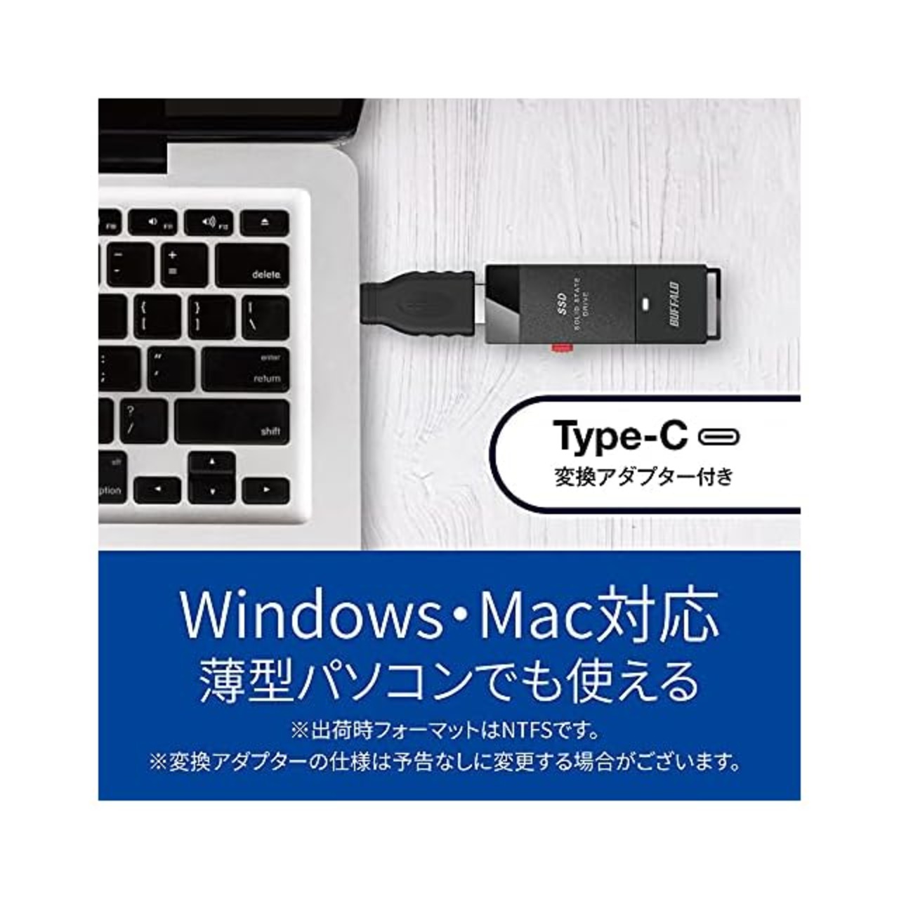商品名:バッファロー SSD 外付け 500GB USB3.2 Gen2 読込速度600MB/秒 PS5/PS4メーカー動作確認済 コンパクト 小型 Type-Cアダプター付属 ブラック 【 iPhone 17 / 17 pro 動作確認済み 】 SSD-SCT500U3BA/N