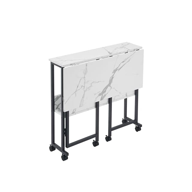 【高機能折り畳み式デスク】天板したのボタンを押すだけで、簡単に折り畳むことができます。インテリアを置く物置や、ドレッサー、キッチンでのサイドテーブルとしても活用可能 。オフィスや、作業台、子供用の勉強机、在宅ワークなど多目的用途で使用できます。
