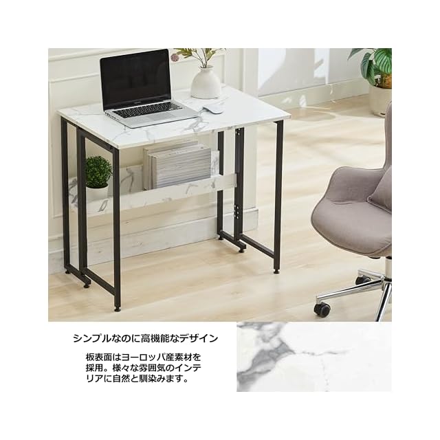 商品名:SYALEN 折りたたみデスク テレワークデスク 幅80 奥行53 高さ75cm 省スペース 多機能テーブル 机 コンパクデスク メラミン加工 木製 モニターアーム取付対応 ホワイトマーブル/白 SLDK-01WM80