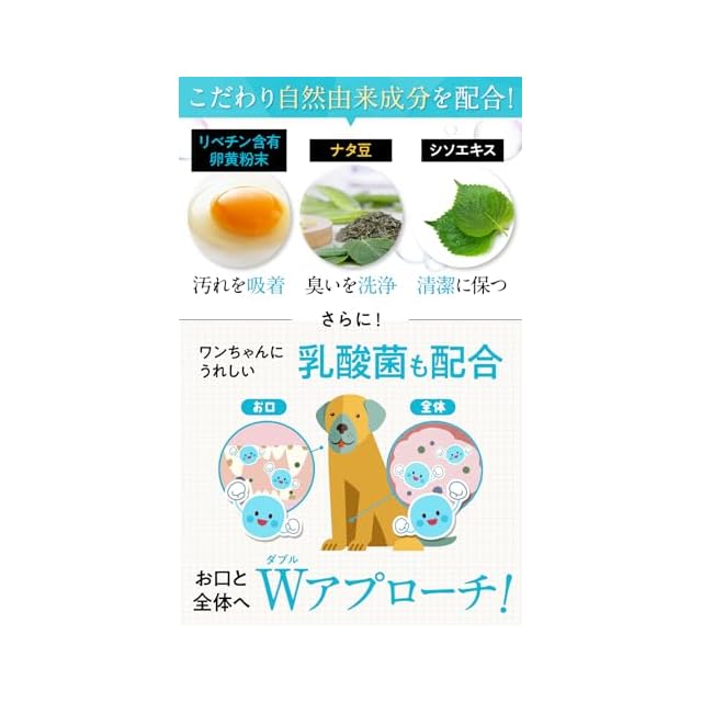【累計販売数75万本*突破!簡単お口ケア】 ①[クリーン]お口の健康を清潔に保つことで健康的に保つ。②[バランス]わんちゃんにとって健康的でキレイな状態を維持。③[ダブルケア]植物エキスのマスキング効果とブラッシング効果(歯磨き)によりしっかり健康と犬のデンタルケアをお届け。※2020年9月~2023年12月 自社調べ