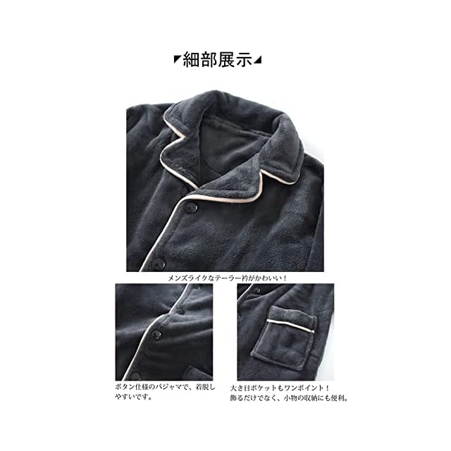 商品名:[wechose] メンズ パジャマ フランネル 上下セット 部屋着 ルームウェア ゆったり 両面起毛 裏起毛 長袖 防寒 暖かい 厚手 衿付き ポケット付き 秋冬服 無地 肌に優しい ふんわり 寝間着light gray-M