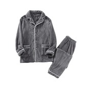 [wechose] メンズ パジャマ フランネル 上下セット 部屋着 ルームウェア ゆったり 両面起毛 裏起毛 長袖 防寒 暖かい 厚手 衿付き ポケット付き 秋冬服 無地 肌に優しい ふんわり 寝間着light gray-M