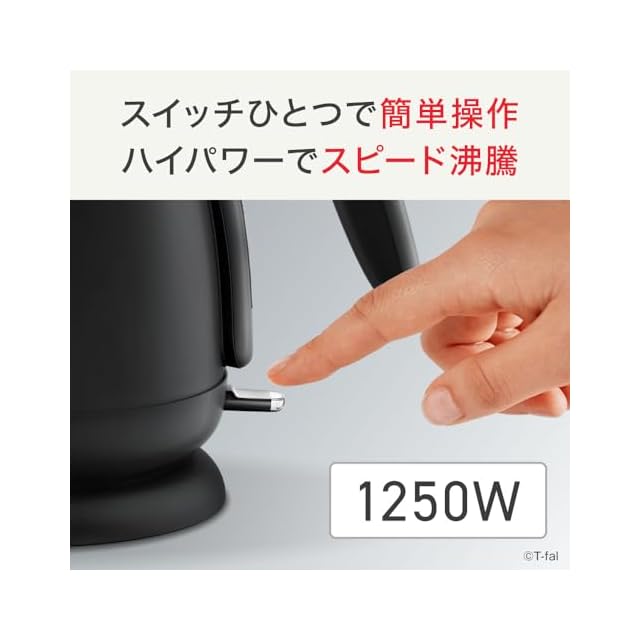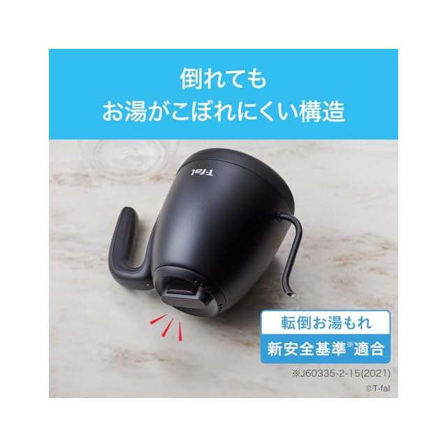 ティファール 電気ケトル 0.8L ドリップ コーヒー 1250 Wのハイパワーですぐに沸く 転倒お湯もれロック 「カフェ ロック」 ブラック KO9218JP