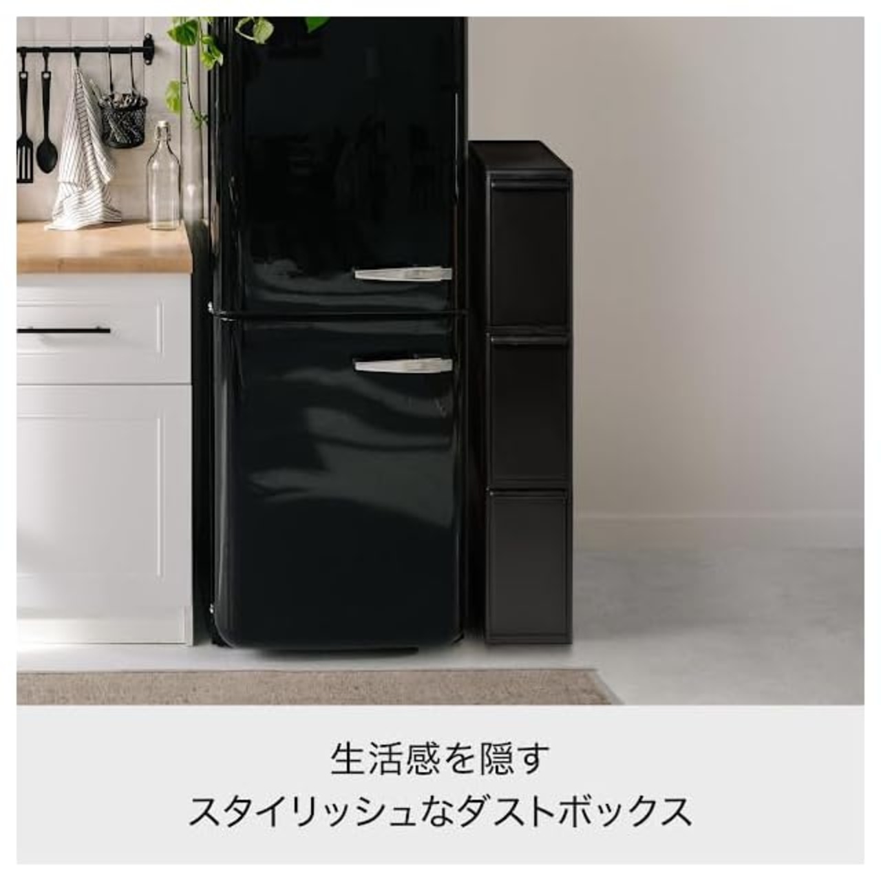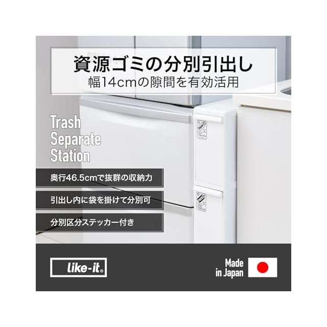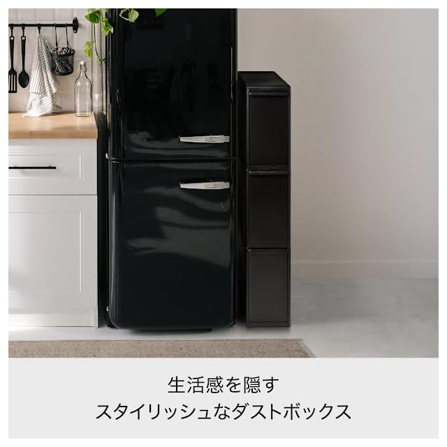 商品名:ライクイット (like-it) フタ付きゴミ箱 分別引出し ステーション スーパースリム3段 約幅14cm×奥行き46.5×高さ79cm ブラック 27L 日本製 FBS-3 別売キャスター取り付け可能
