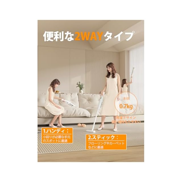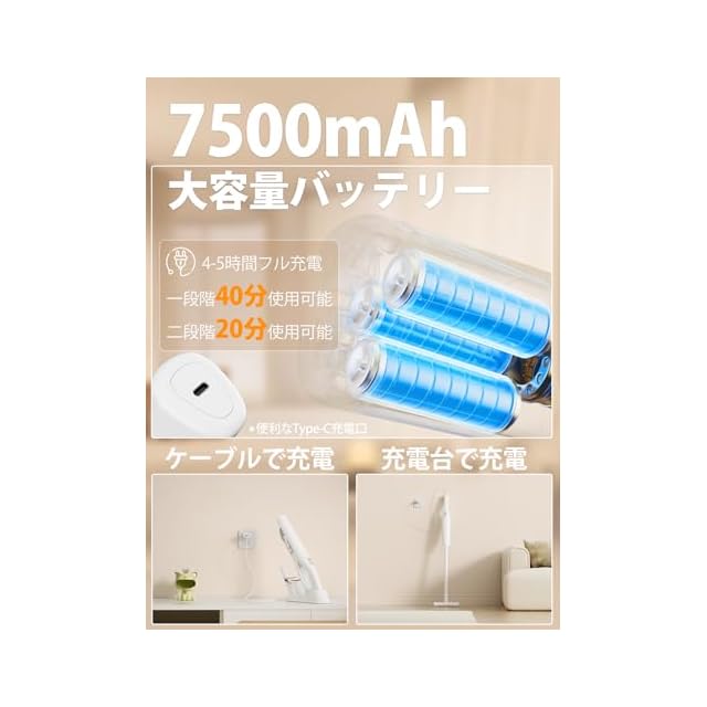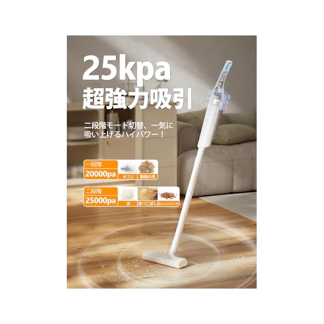 商品名:掃除機 コードレス 【2025新登場】25000pa超強力吸引 ハンディスティックク 超軽量 リーナー vacuum cleaner cordless そうじき 電気掃除機 2wayタイプ LEDライト付き 自走式 多重濾過 HEPAフィルター サイクロン式 充電式 Type-C充電スタンド 充電台収納 一人暮らし 家庭用 車用 年末お掃除 日本語取扱説明書 白い