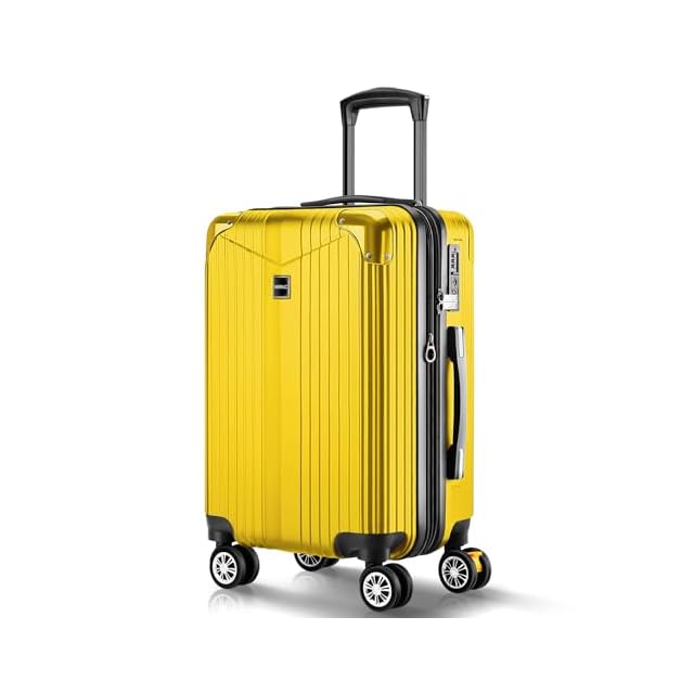 [VARNIC] スーツケース キャリーケース キャリーバッグ 【YKK】 製ファスナー 拡張機能 ストッパー付きキャスター TSAダイヤル式ロック 振動軽減 軽量 大容量 静音 乾湿分離ポケットつき スーツケースベルト付き 物掛けフック式底足 ファスナータイプ 旅行 ビジネス 出張 学生用キャリーケース (イエロー, S)